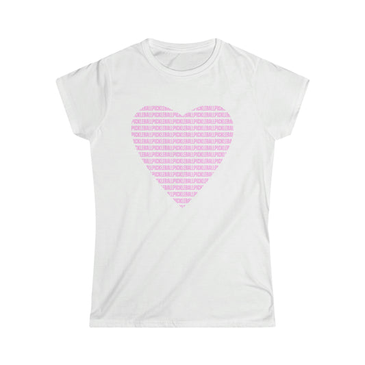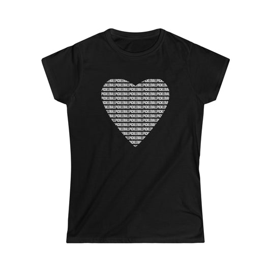 Pickleball Word Heart for the Love of Pickleball in a Women's Softstyle Tee